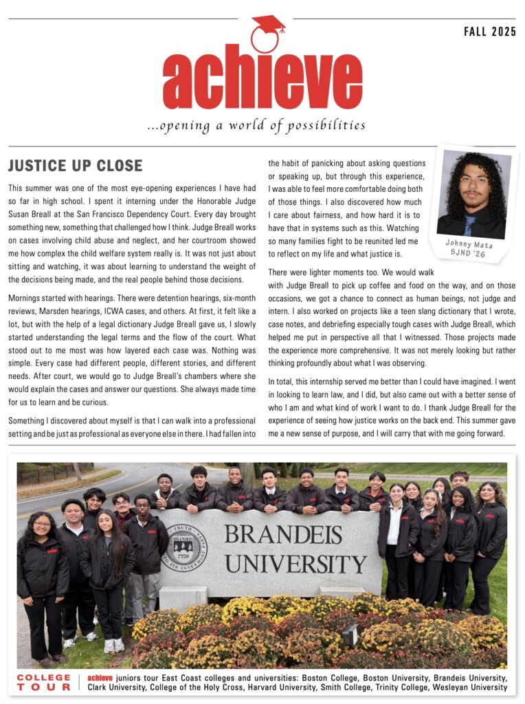 The help and mentorship of achieve set me up to succeed and have an amazing four years at high school.
